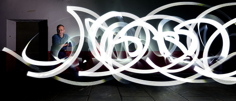 Am Kulturanlass „Lichtblicke 2017“ will der Fotograf als „Lichtdirigent“ die latente Energie des Besuchers fotografisch mittels bewegtem Licht oder Licht in Bewegung einfangen und festhalten.